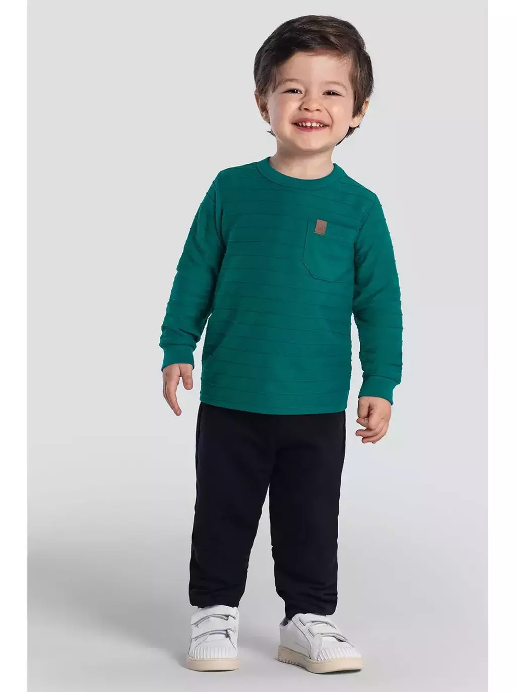 Camiseta Manga Longa Suedime Menino Verde Marrom