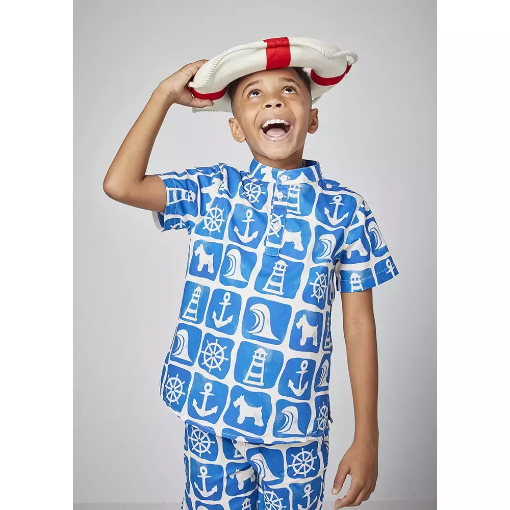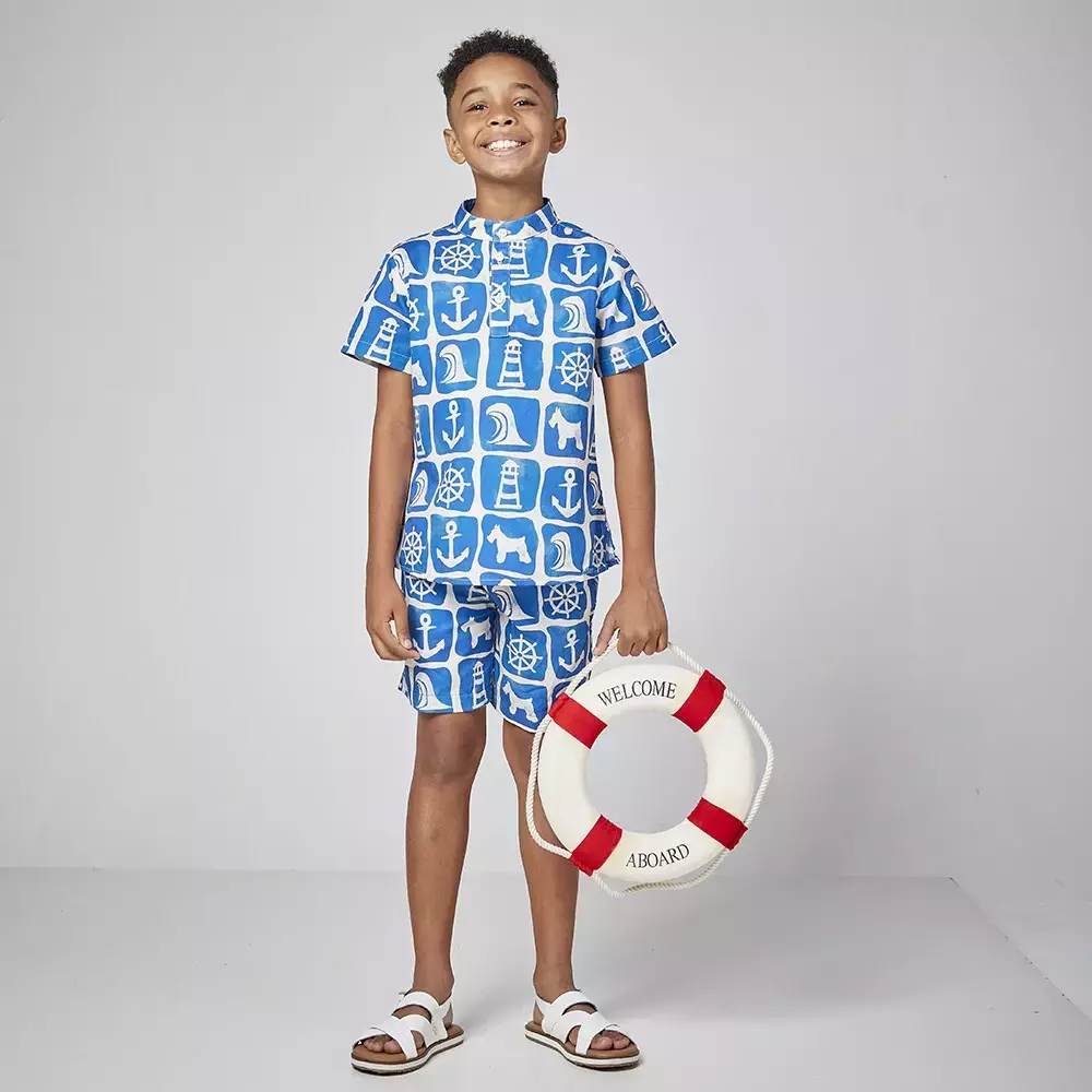 Conjunto camiseta algodão Shorts linho azul Oliver