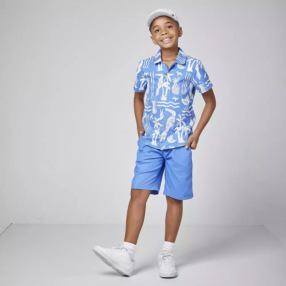 Conjunto camisa tricoline alfaiataria short bolso oliver