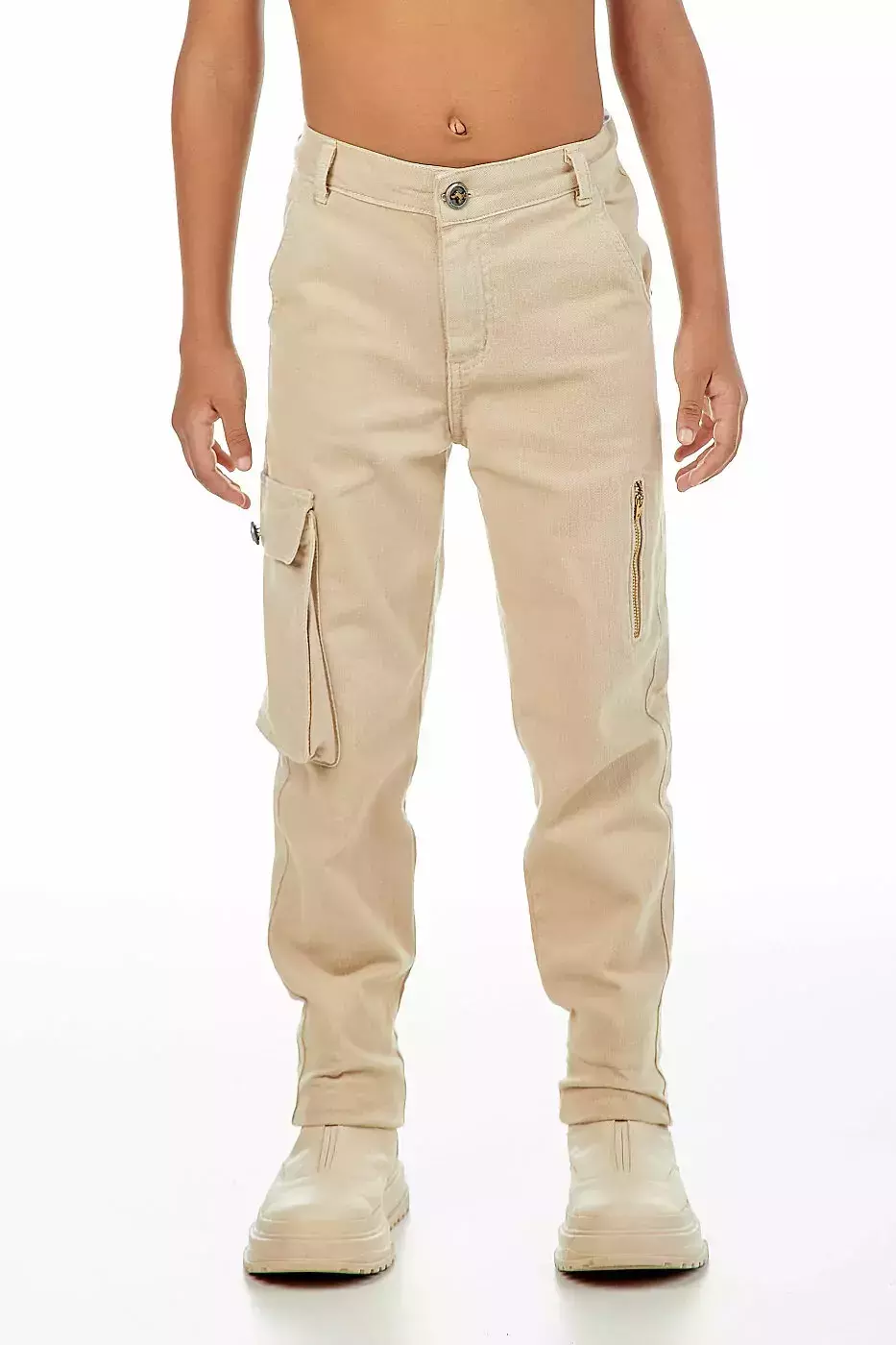 Renove seu guarda-roupa com o Conjunto Camiseta Manga Longa Calça Sarja Cargo Caqui Oliver e experimente a combinação ideal entre estilo e funcionalidade!