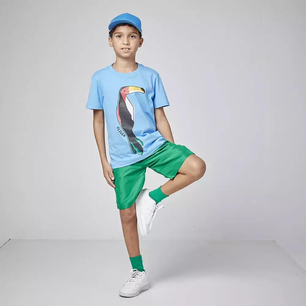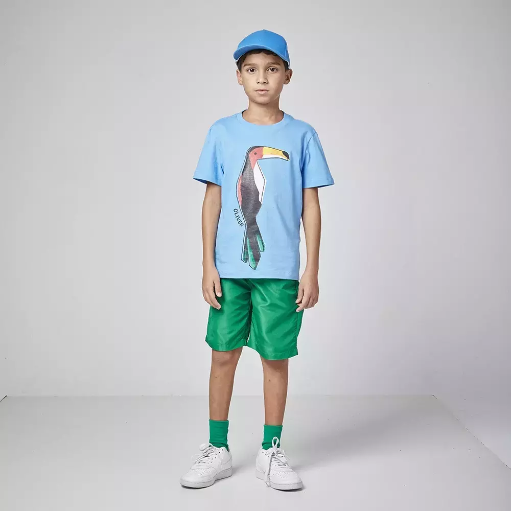 Conjunto menino camiseta azul papagaio short oliver