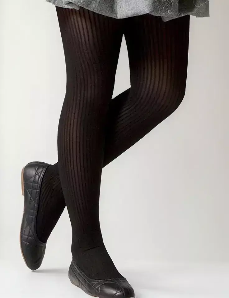 Meia calça Selene confeccionada em poliamida e elastano, malha canelada com fio 70.